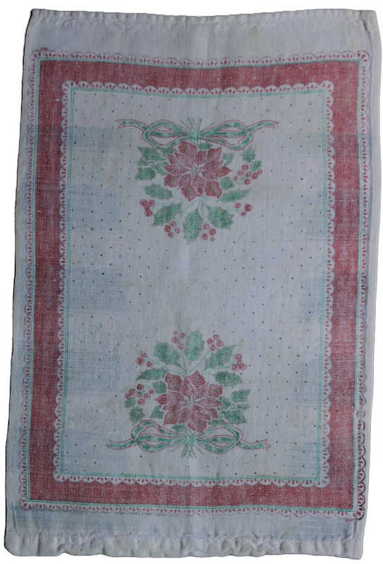 This towel is from Sullivan, Indiana. I found it in my aunt’s cupboard, in a box in 1953.